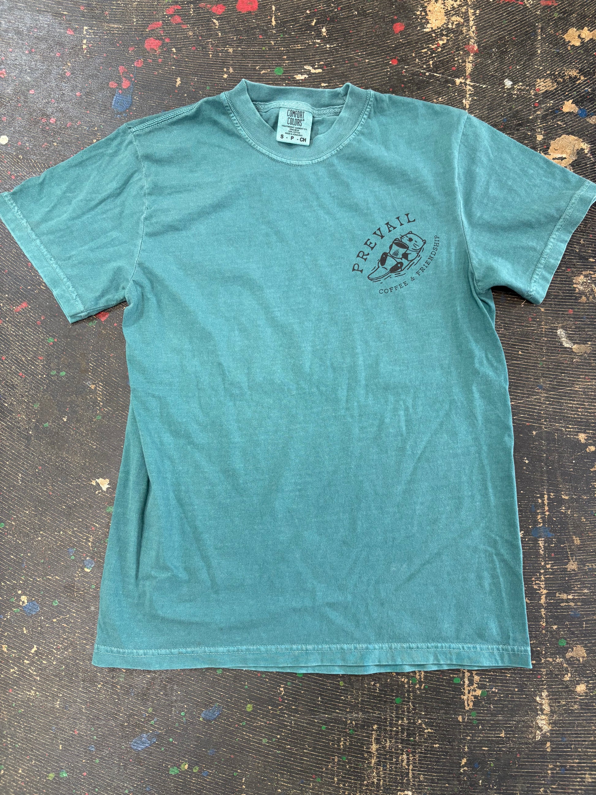 Coffee & Friendship + Tug the Otter T-Shirt | Emerald