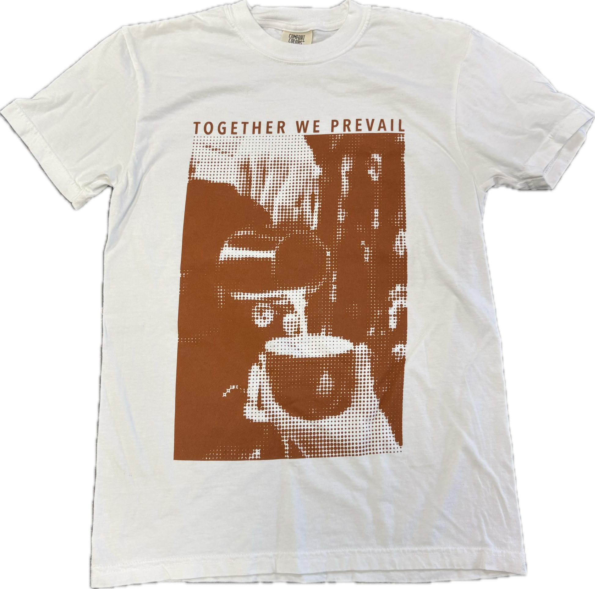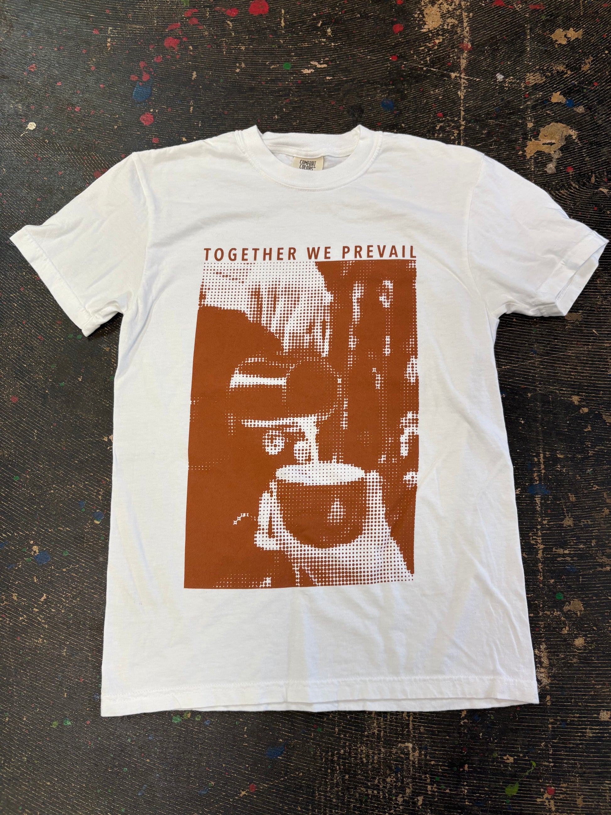 Comfort Colors Heavyweight 100% Cotton T-Shirt featuring a halftone print of a barista pouring latte art in a clay color across the front